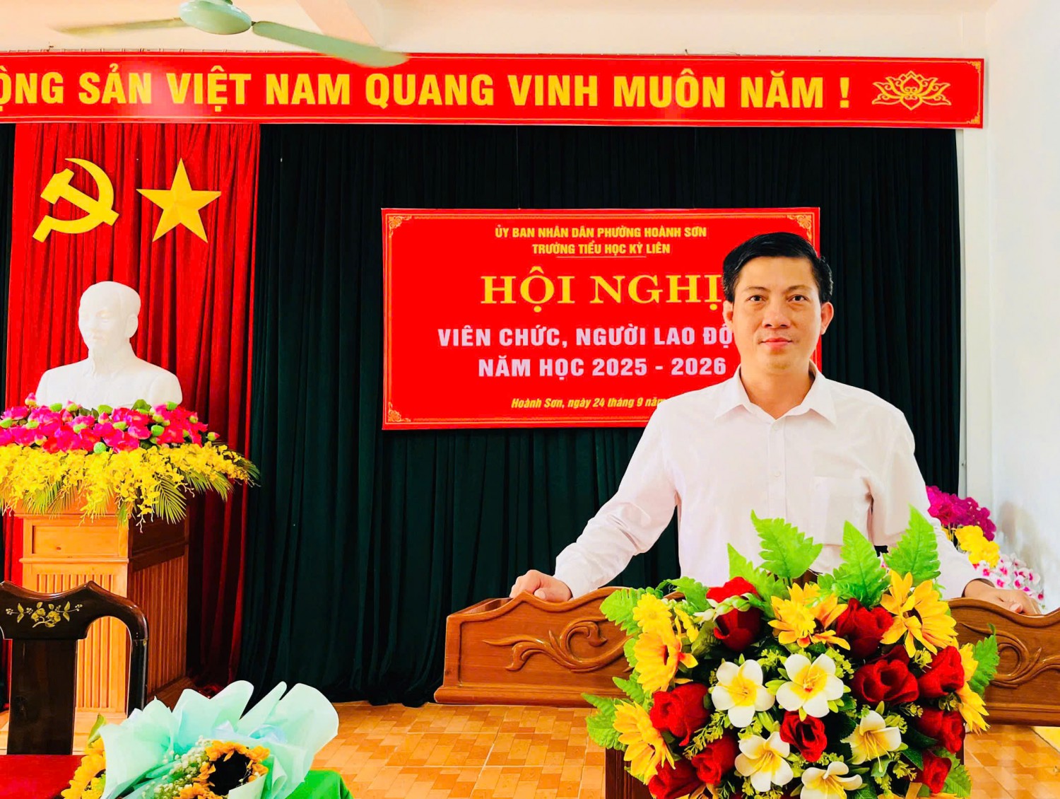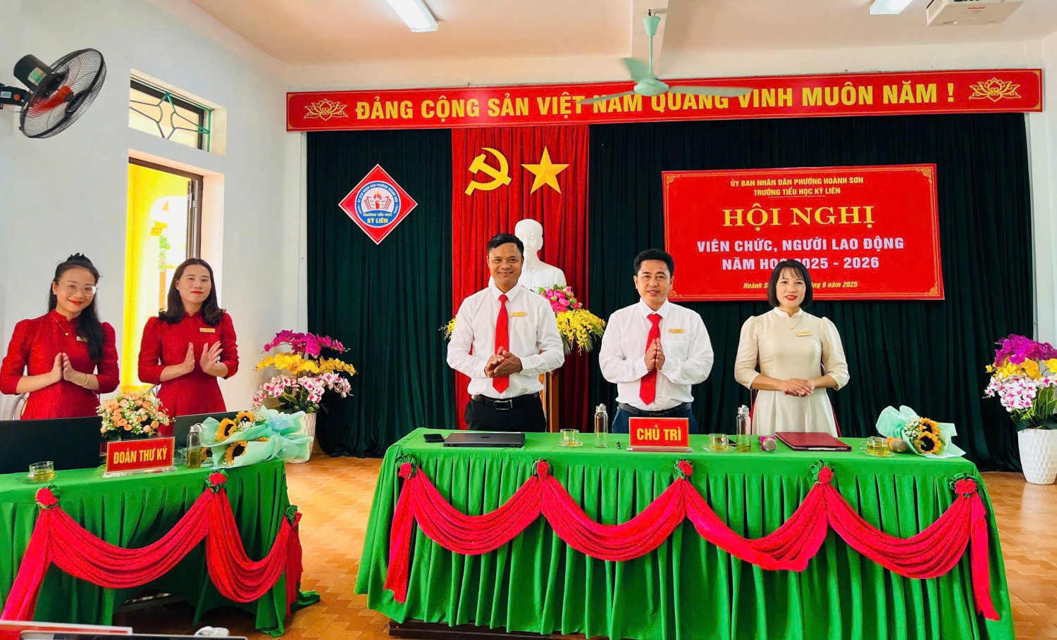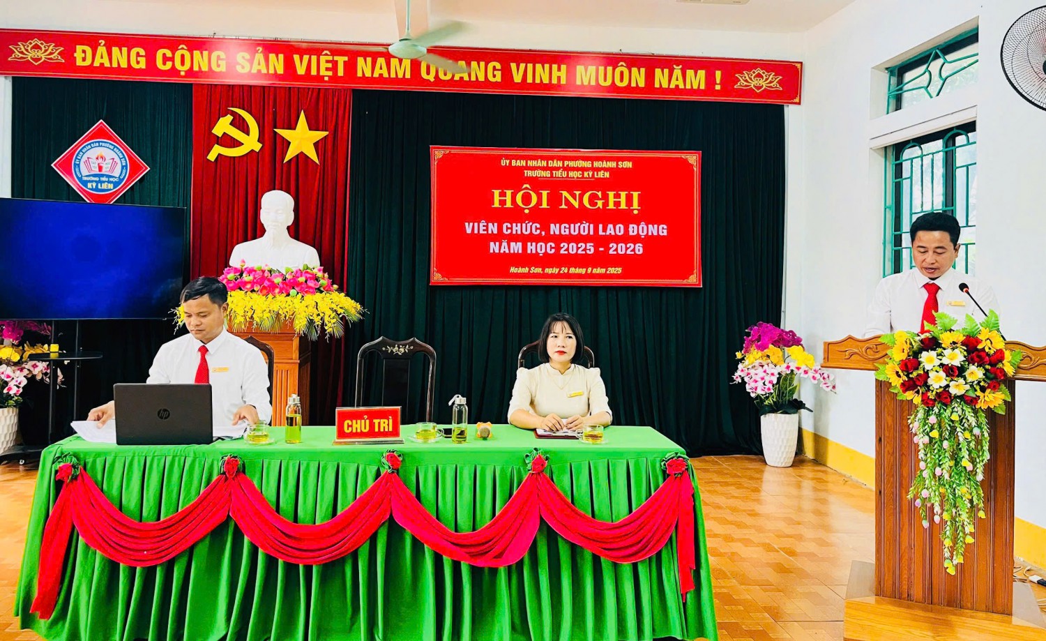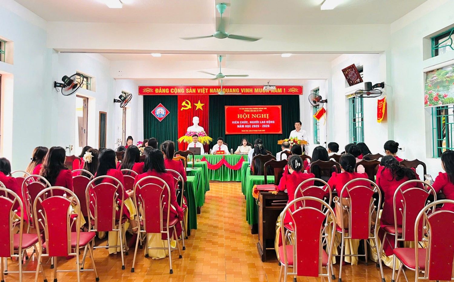 Thực hiện Hướng dẫn số 2850/HD-SGDĐT ngày 10/9/2025 của Sở GDĐT Hà Tĩnh và Hướng dẫn số 01/HD- UBND ngày 12/9/2025 của UBND phường Hoành Sơn về việc Hướng dẫn tổ chức Hội nghị viên chức, người lao động năm học 2025-2026; Sáng nay ngày 24/9/2025 Trường tiểu học Kỳ Liên long trọng tổ chức Hội nghị viên chức và người lao động năm học 2025-2026 nhằm đánh giá lại những hoạt động của năm học 2024-2025 và triển khai nhiệm vụ năm học 2025-2026.