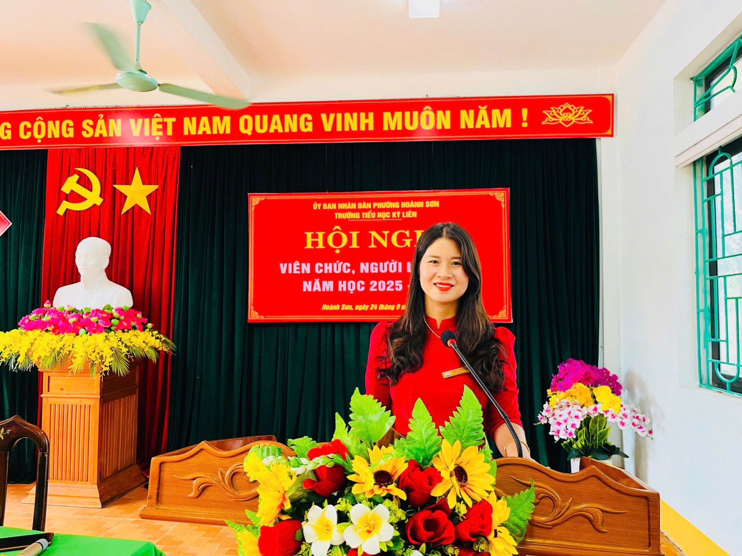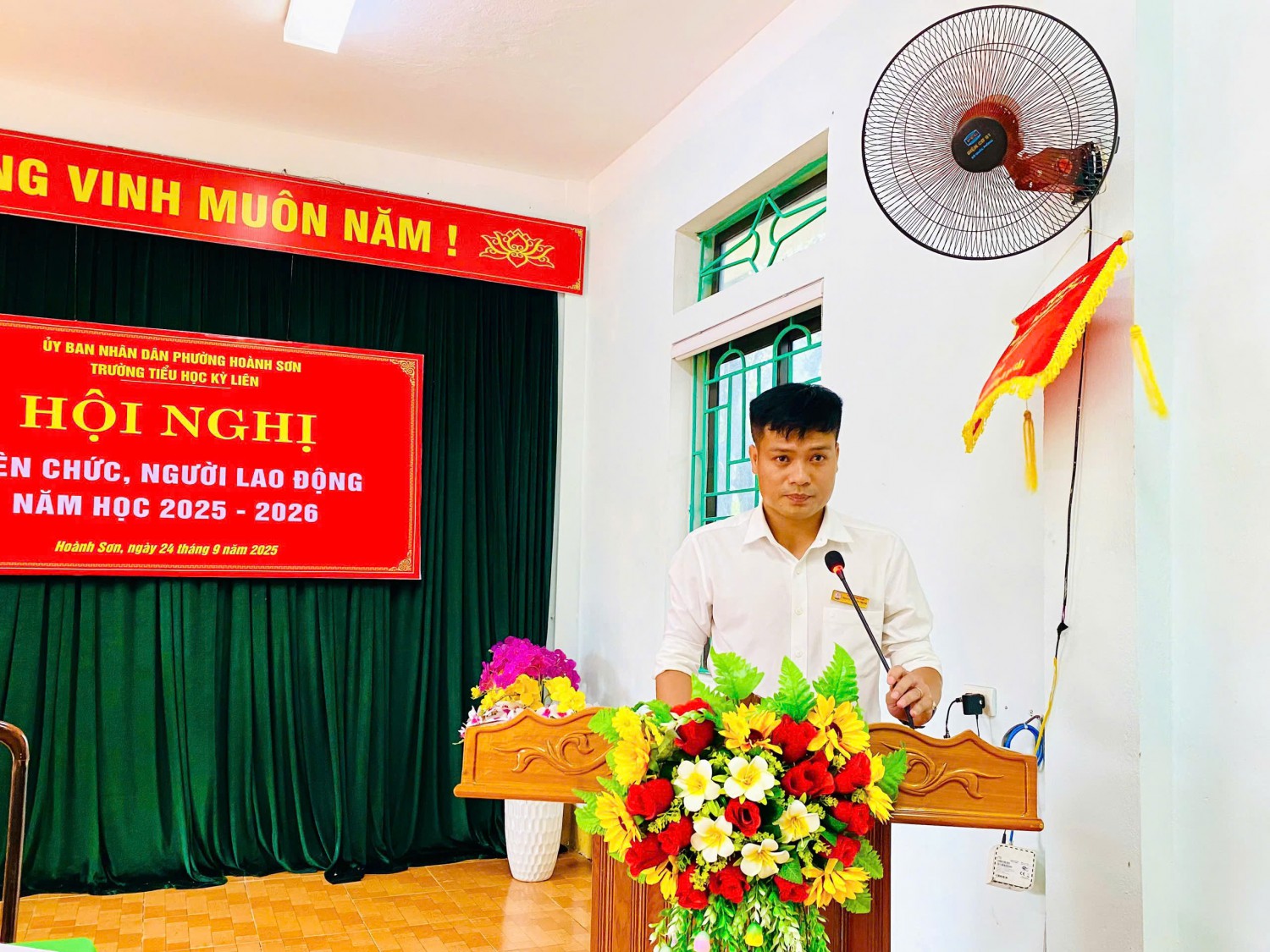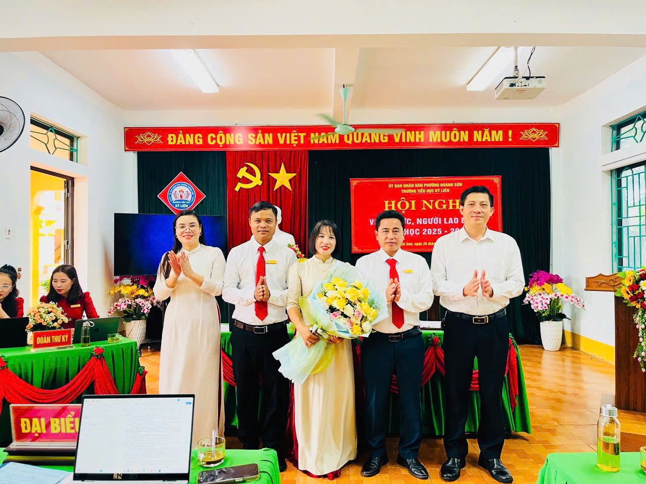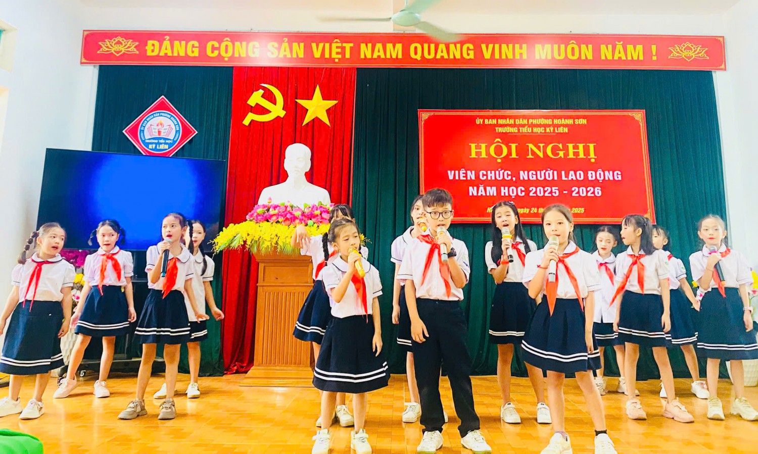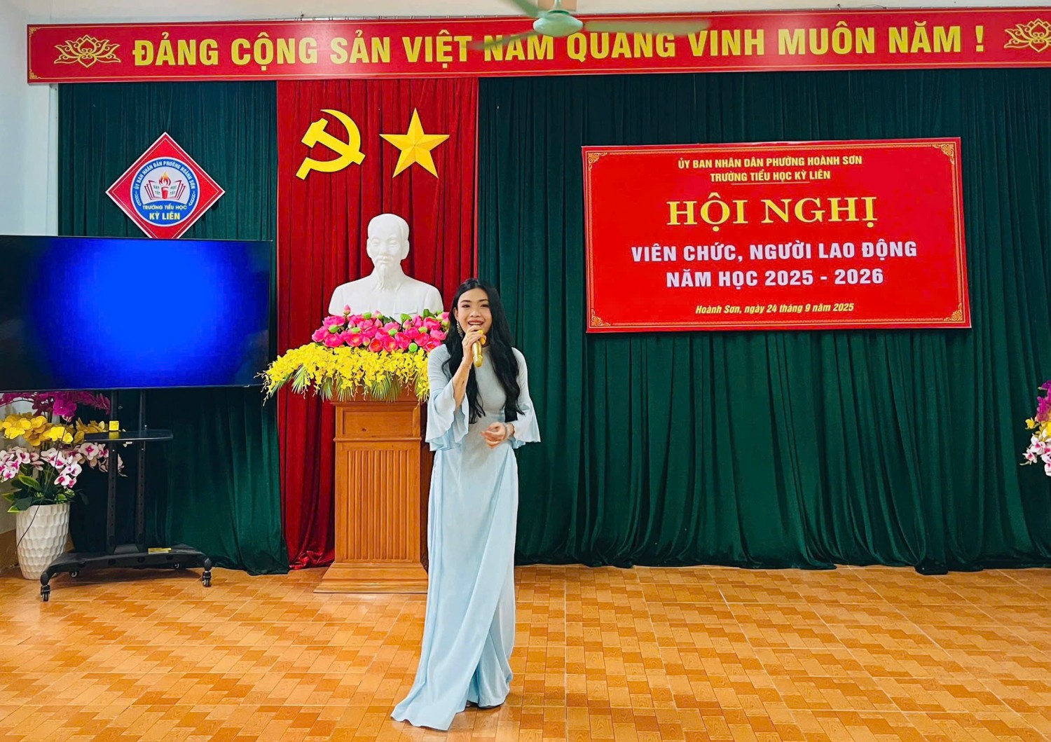 Thực hiện Hướng dẫn số 2850/HD-SGDĐT ngày 10/9/2025 của Sở GDĐT Hà Tĩnh và Hướng dẫn số 01/HD- UBND ngày 12/9/2025 của UBND phường Hoành Sơn về việc Hướng dẫn tổ chức Hội nghị viên chức, người lao động năm học 2025-2026; Sáng nay ngày 24/9/2025 Trường tiểu học Kỳ Liên long trọng tổ chức Hội nghị viên chức và người lao động năm học 2025-2026 nhằm đánh giá lại những hoạt động của năm học 2024-2025 và triển khai nhiệm vụ năm học 2025-2026.